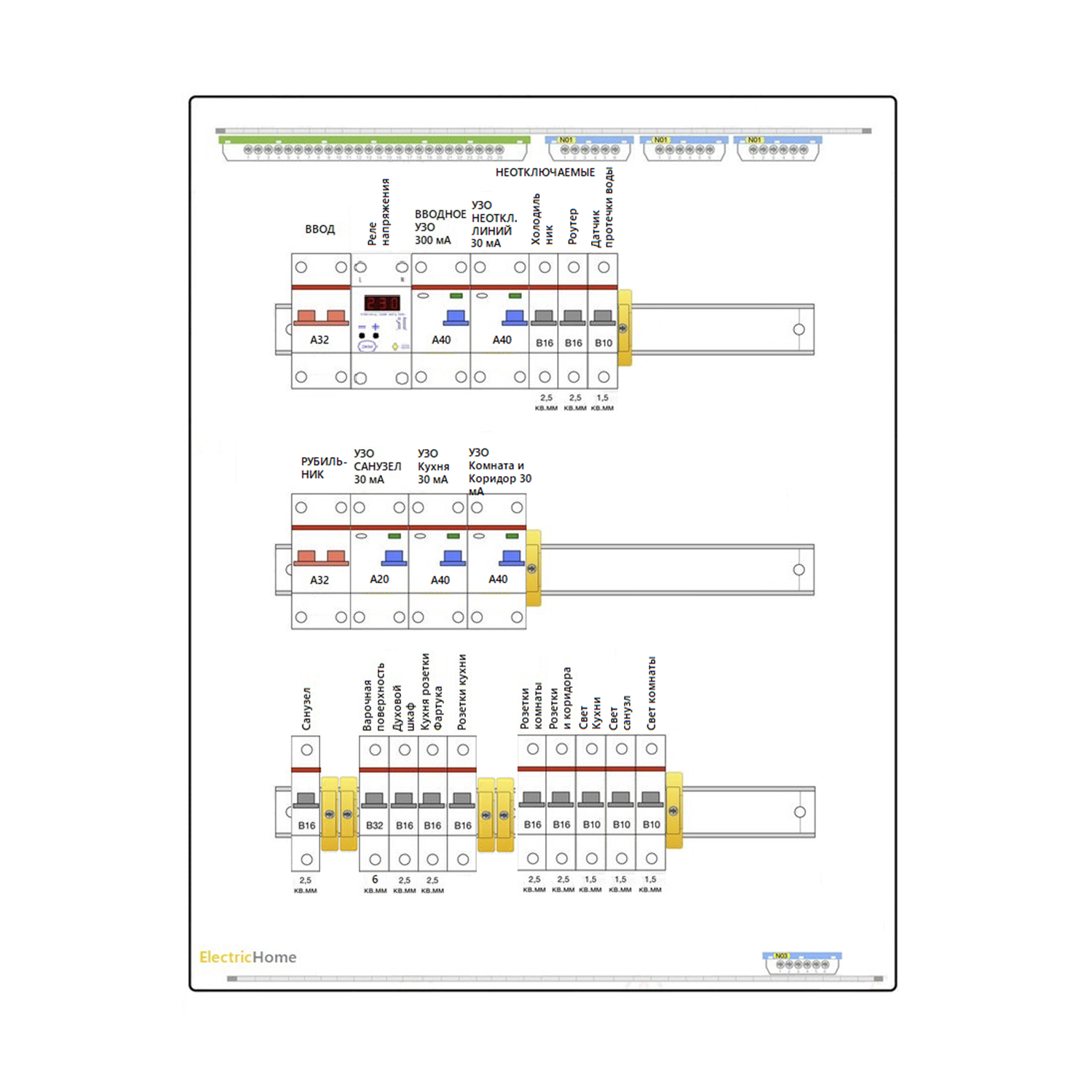 Самый простой Электрощит собранный по требованиям ПУЭ должен содержать: